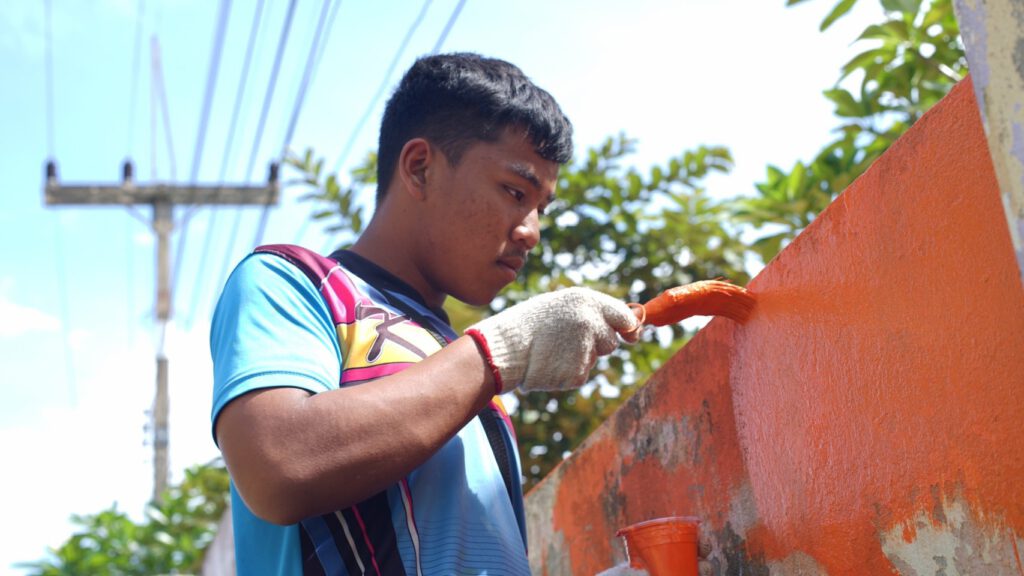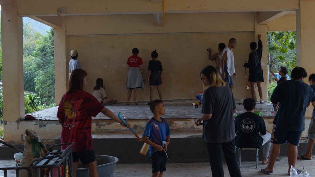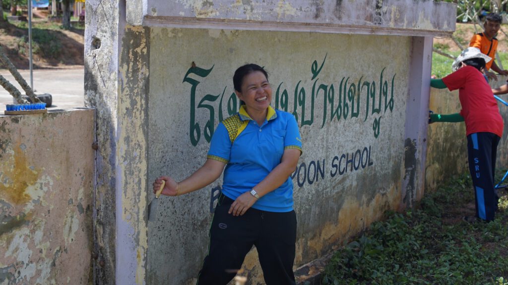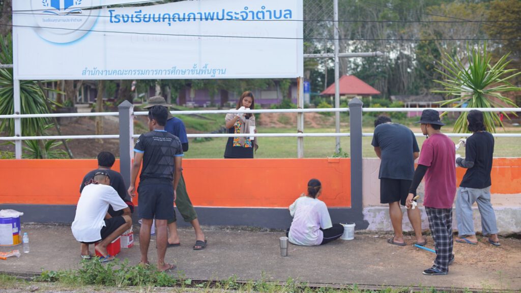 นักศึกษาจากมหาวิทยาลัยราชภัฎสวนสุนันทาร่วมออกค่ายพัฒนาภูมิทัศน์โรงเรียนบ้านเขาปูน