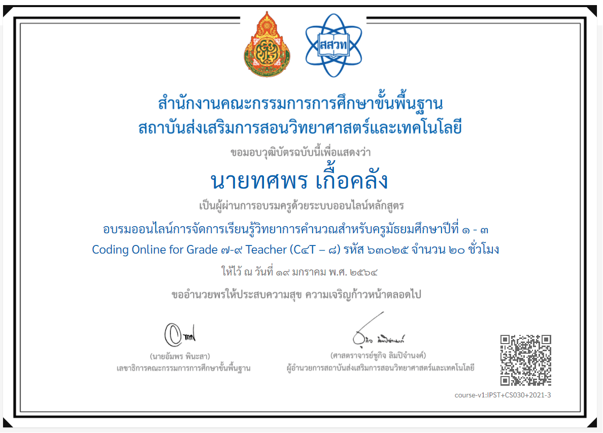 อบรมออนไลน์การจัดการเรียนรู้วิทยาการคำนวณสำหรับครูมัธยมศึกษาปีที่ 1-3 Coding Online for Grade 7-9 Teacher (C4T – 8)